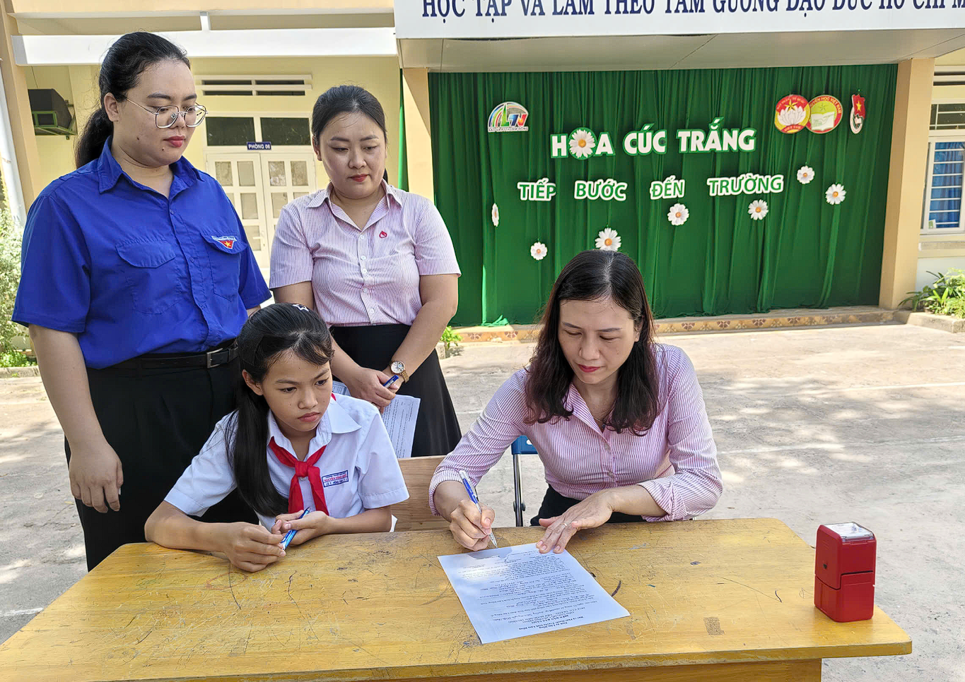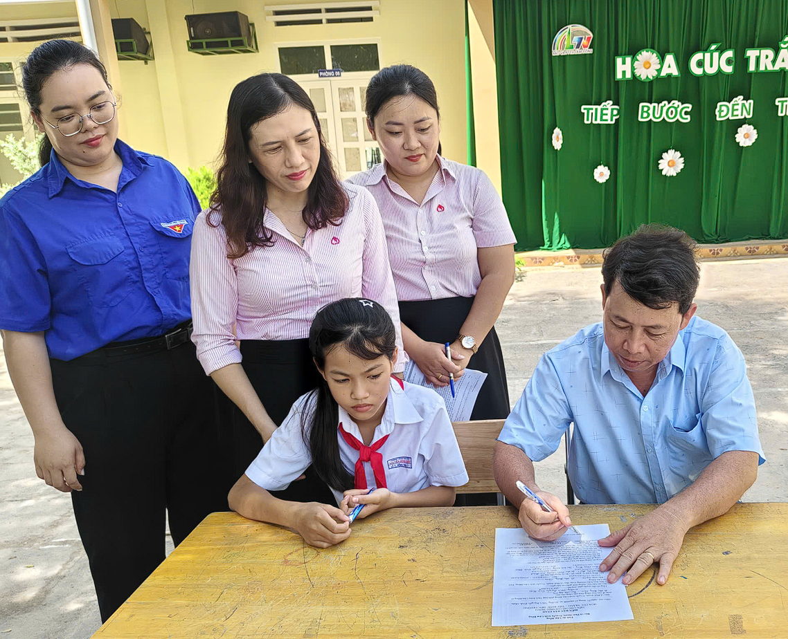 Để đảm bảo nguồn quỹ được sử dụng hiệu quả và bền vững, tạo điểm tựa vững chắc cho tương lai học tập của em Hồng Thoa, các bên thực hiện và đồng quản lý đã thống nhất ký biên bản bàn giao: