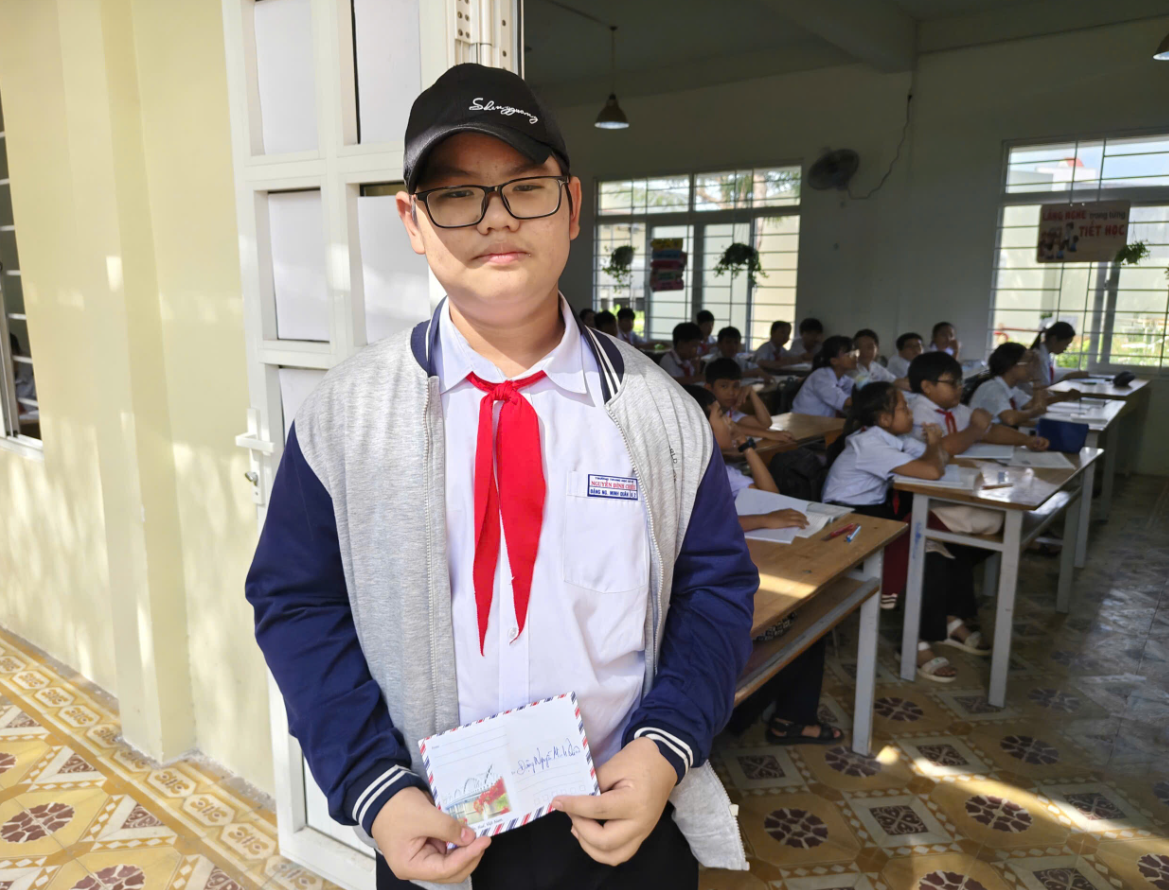 Sau khi biết hoàn cảnh khó khăn của em Quân, Nhóm Mai Quyên – trong đó có một số thành viên là cựu học sinh Trường THCS Nguyễn Đình Chiểu – đã nhanh chóng phối hợp với cô Thọ để gửi lời thăm hỏi và chia sẻ với gia đình. Sáng nay, cô Nguyễn Thị Thọ thay mặt nhóm đến tận lớp trao số tiền hỗ trợ 3.000.000 đồng cho em Quân, đồng thời gửi lời động viên, khích lệ tinh thần để em tiếp tục kiên cường chiến đấu với bệnh tật.