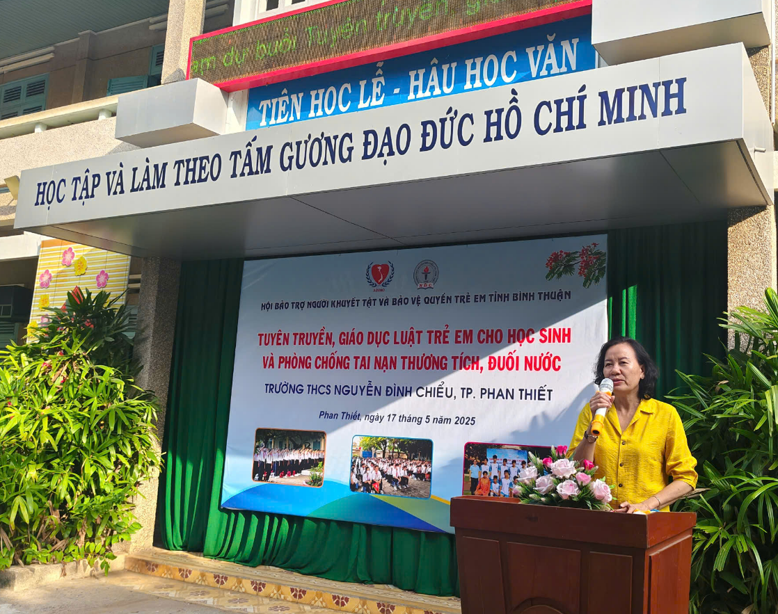 Sáng ngày 17 tháng 5 năm 2025, trong không khí trang trọng và thiết thực, Trường THCS Nguyễn Đình Chiểu đã phối hợp cùng Hội Bảo trợ Người khuyết tật và Bảo vệ quyền trẻ em tỉnh Bình Thuận, Hội Bảo trợ Người khuyết tật và Bảo vệ quyền trẻ em thành phố Phan Thiết tổ chức thành công chương trình "Tuyên truyền phòng chống xâm hại trẻ em, giáo dục pháp luật và kỹ năng an toàn" cho hơn 600 em học sinh nhà trường.