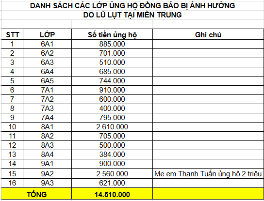 Nhà trường xin thông báo tổng số tiền quyên góp được là: 25.710.000 đồng (Hai mươi lăm triệu, bảy trăm mười nghìn đồng).