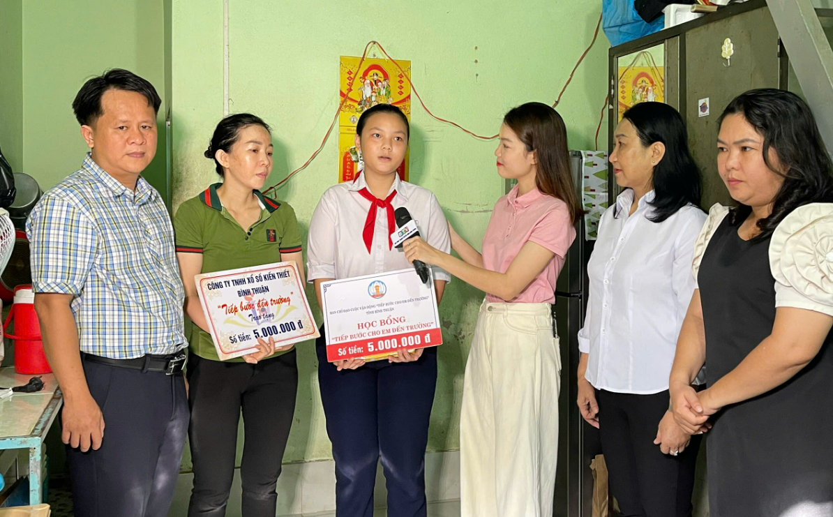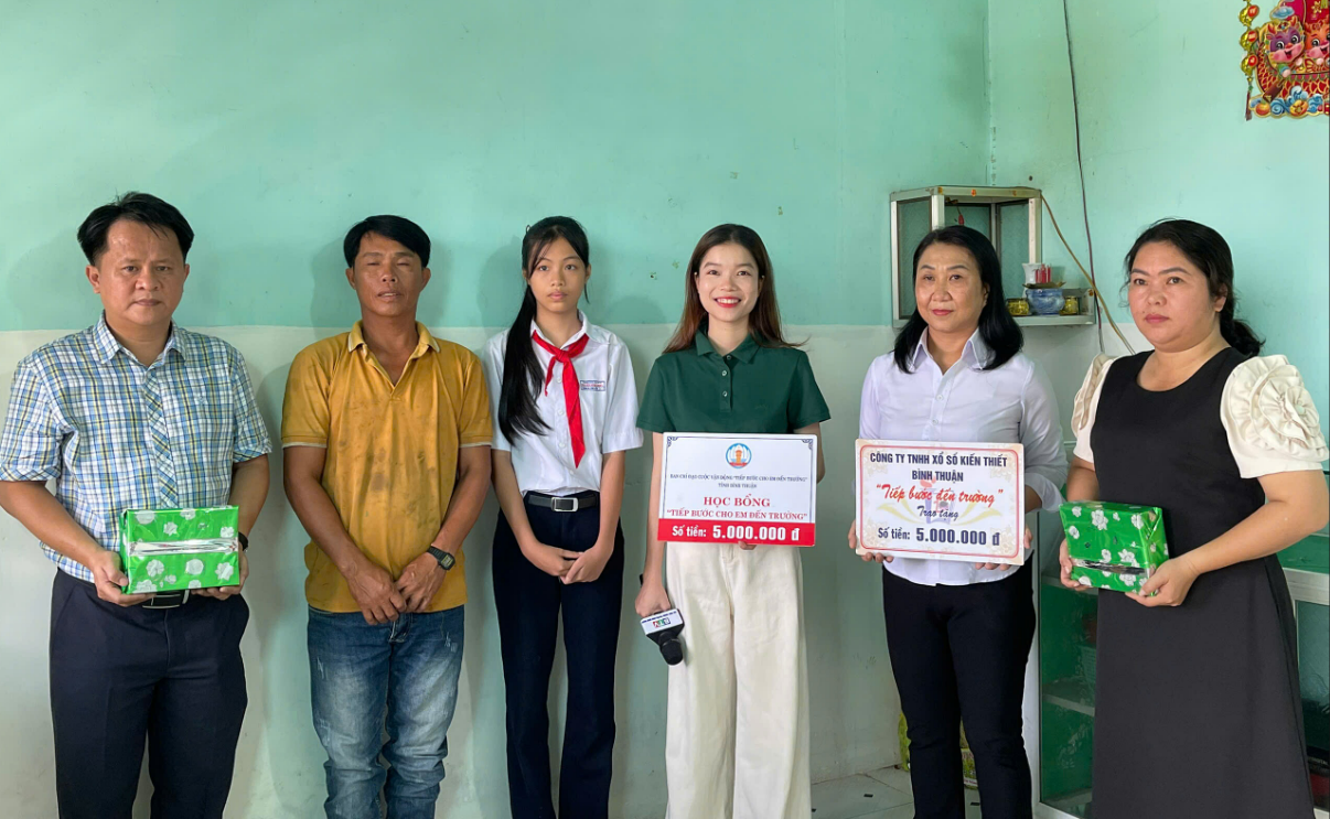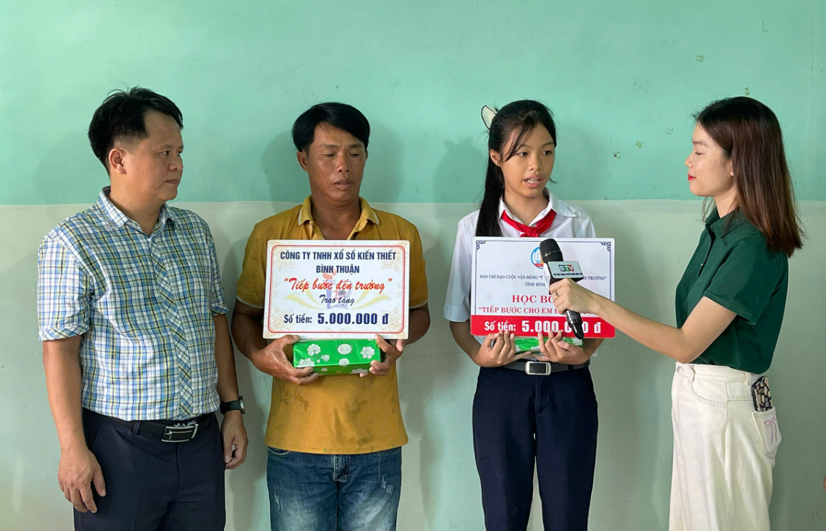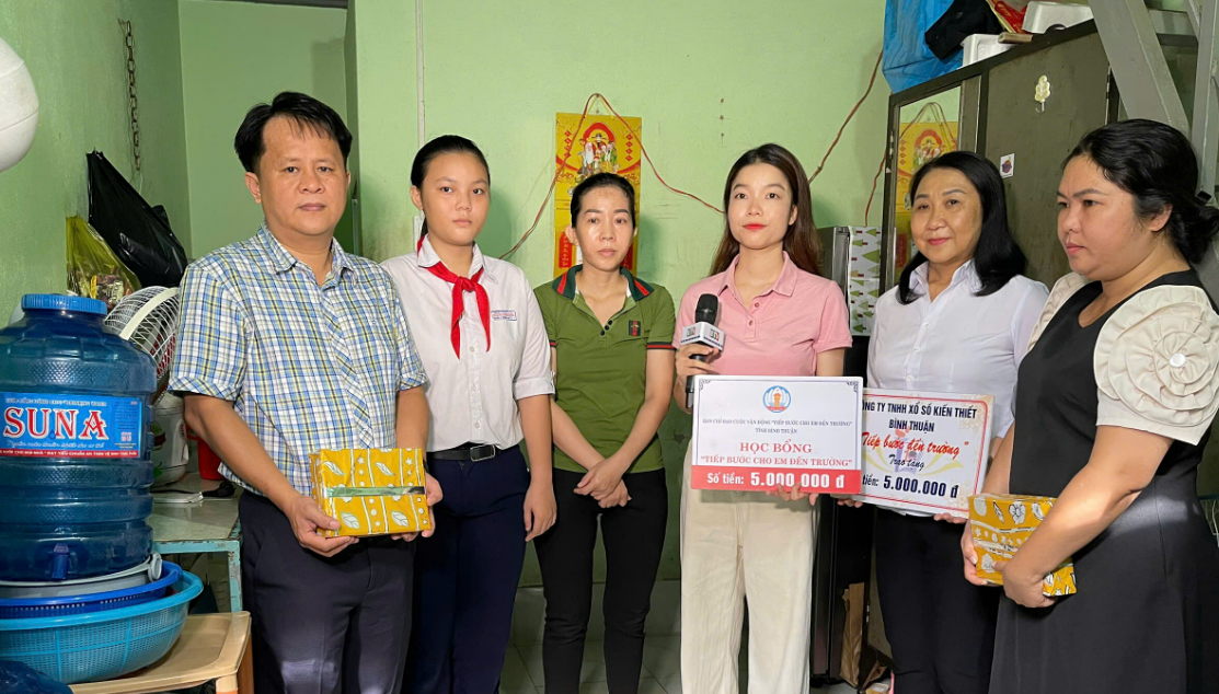 Mỗi em được nhận suất học bổng trị giá 10 triệu đồng từ chương trình hỗ trợ học sinh vượt khó do Công ty Xổ số Kiến thiết tỉnh Bình Thuận tài trợ. Đây là sự quan tâm thiết thực nhằm động viên, tiếp sức kịp thời cho những học sinh có hoàn cảnh đặc biệt nhưng vẫn nỗ lực vươn lên trong học tập.