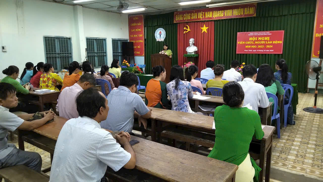 Vào ngày 19/10/2024, Trường THCS Nguyễn Đình Chiểu đã tổ chức thành công Hội nghị Viên chức và Người lao động, đánh dấu một cột mốc quan trọng trong hành trình phát triển của nhà trường. Hội nghị không chỉ là dịp để tổng kết những thành tựu đã đạt được trong năm học vừa qua, mà còn là cơ hội để toàn thể cán bộ, giáo viên và nhân viên cùng nhau định hướng cho tương lai, hướng tới xây dựng một môi trường giáo dục ngày càng tiên tiến và bền vững.
