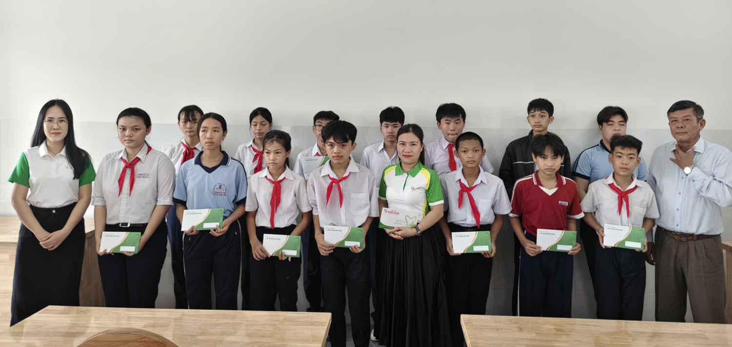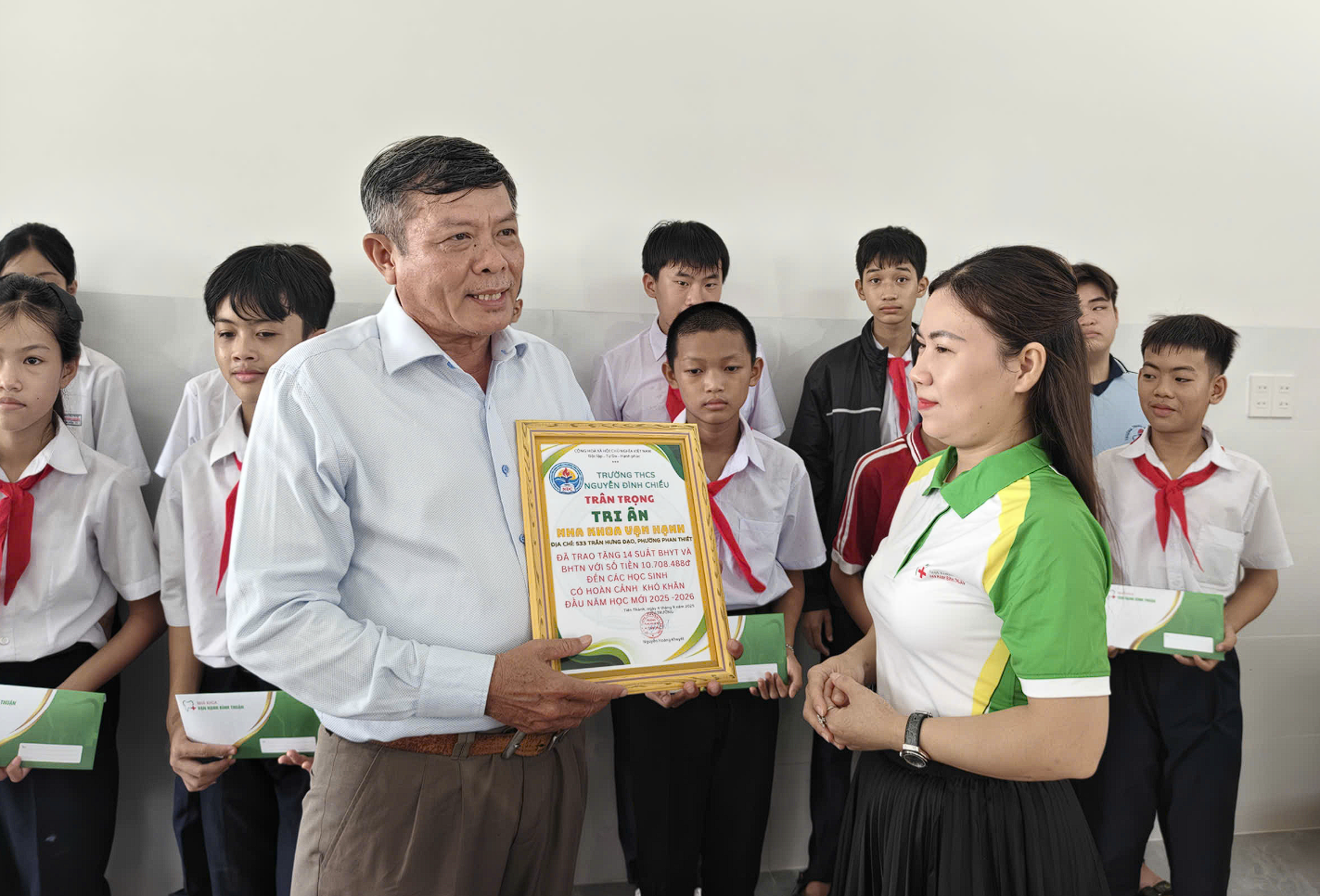 Thông qua sự kết nối và giới thiệu tận tình của thầy Nguyễn Vũ Hùng – cựu giáo viên nhà trường, Nha Khoa Vạn Hạnh đã trao tặng 14 suất Bảo hiểm Y tế và Bảo hiểm tai nạn, với tổng trị giá 10.708.488 đồng, dành cho các em học sinh có hoàn cảnh khó khăn nhân dịp đầu năm học mới 2025 – 2026.
