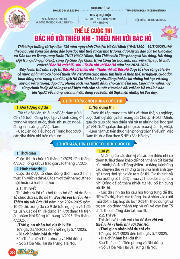 Thực hiện Công văn số 152/PGDĐT-THX ngày 21/02/2025 của Phòng Giáo dục và Đào tạo về việc hưởng ứng tham gia Cuộc thi “Bác Hồ với thiếu nhi-Thiếu nhi với Bác Hồ” năm 2025