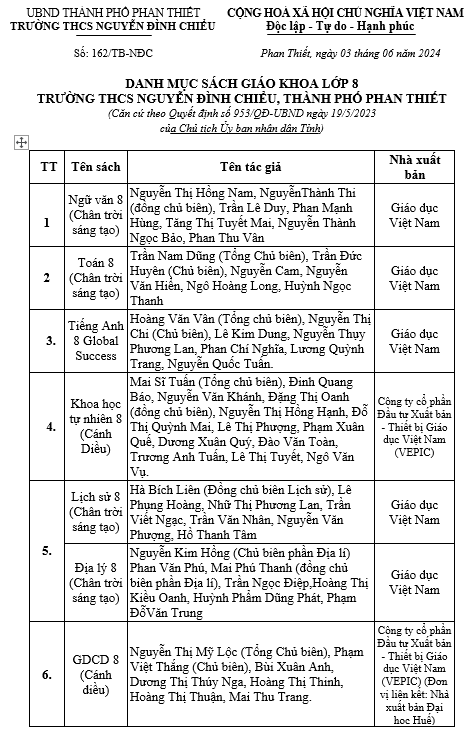DANH MỤC SÁCH GIÁO KHOA LỚP 8