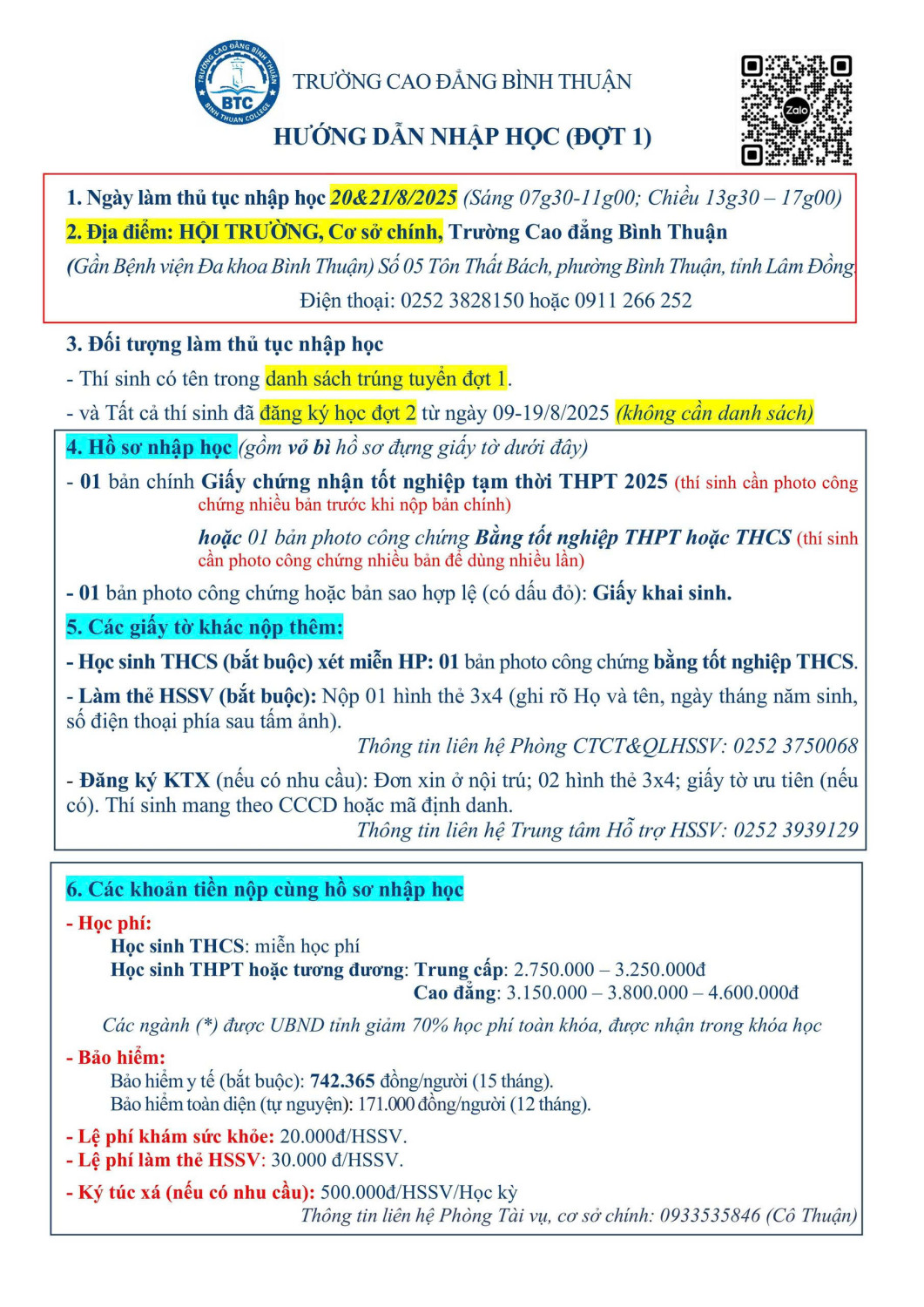 Lưu ý: Phụ huynh và các em học sinh có tên trong danh sách vui lòng chuẩn bị hồ sơ và làm thủ tục nhập học tại Trường Cao đẳng Bình Thuận vào ngày 20 & 21/8/2025 theo hướng dẫn.
