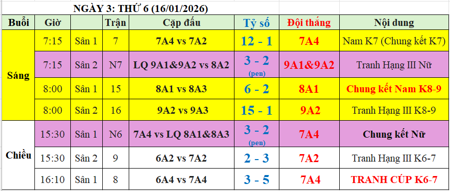 03 Cúp Vô địch cho các nội dung Nam K6-7, Nam K8-9 và Giải Nữ.