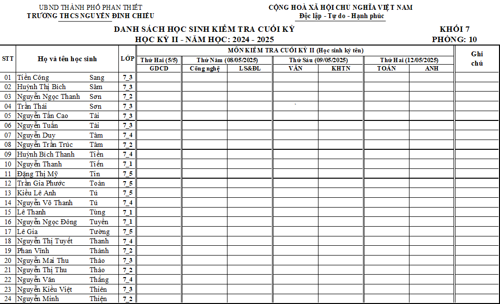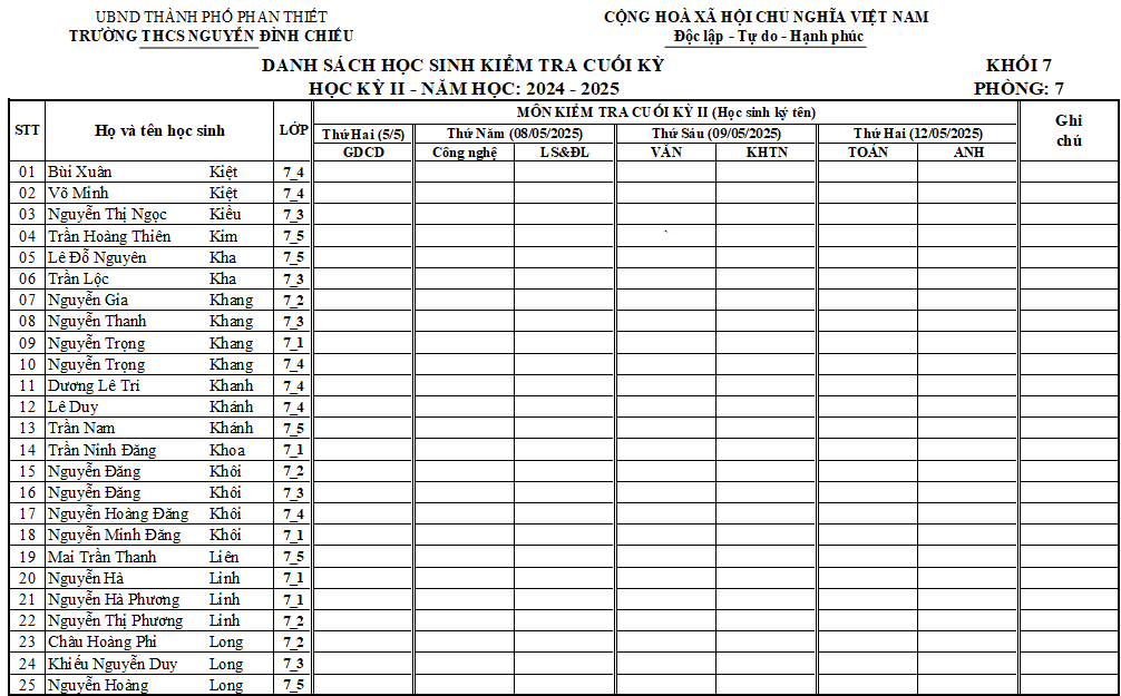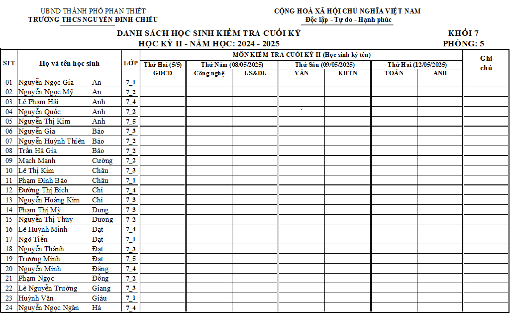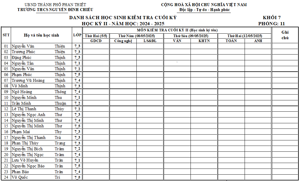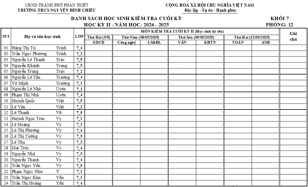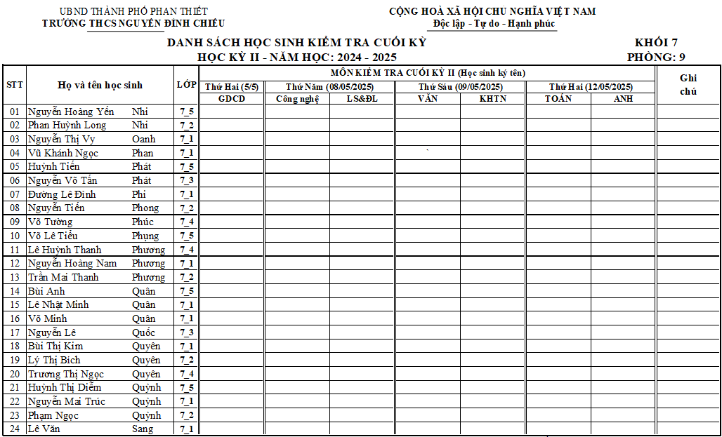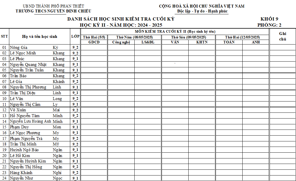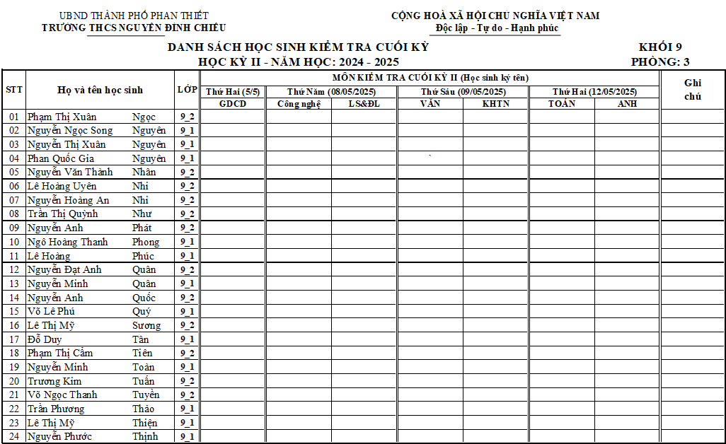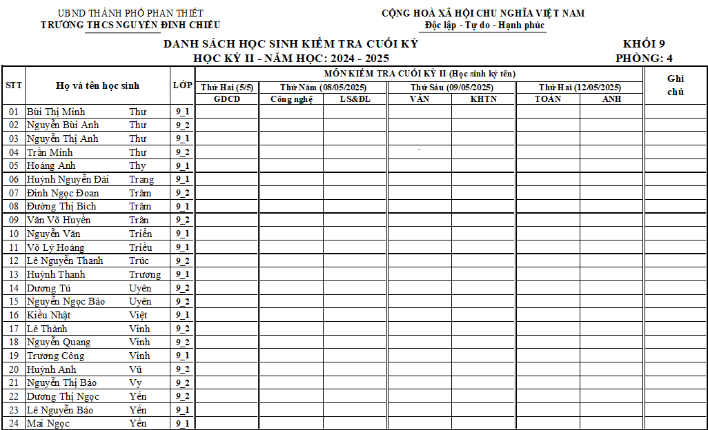 DANH SÁCH HỌC SINH KHỐI 9 NĂM HỌC 2025 - 2026