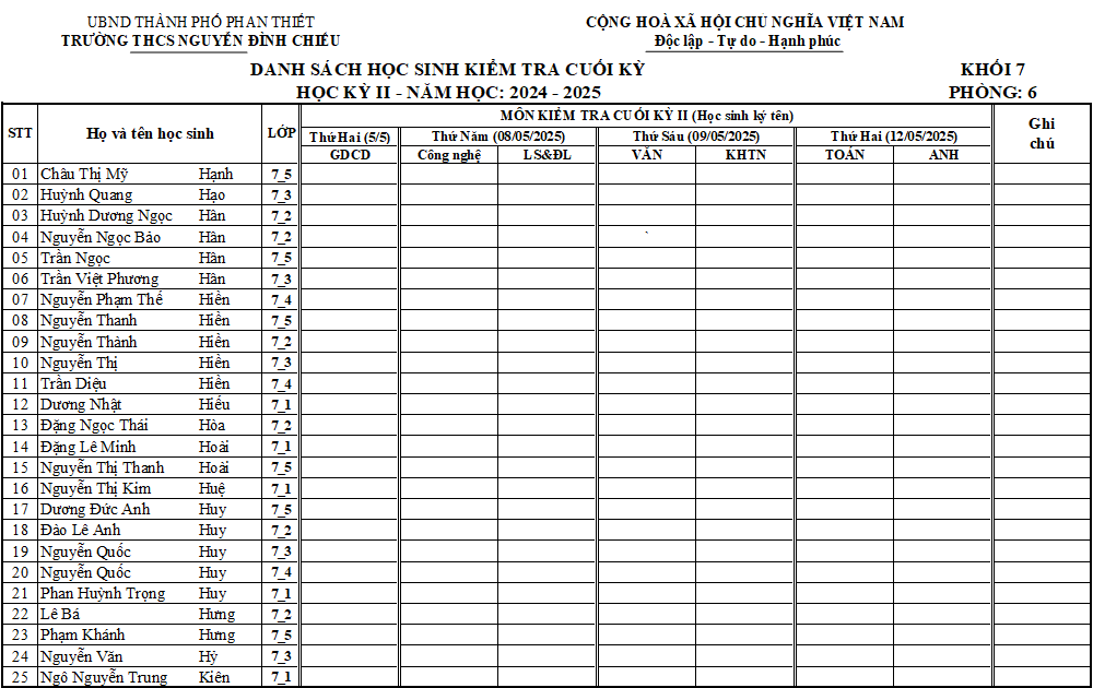DANH SÁCH HỌC SINH TRÚNG TUYỂN VÀO LỚP 6 NĂM HỌC 2025–2026
