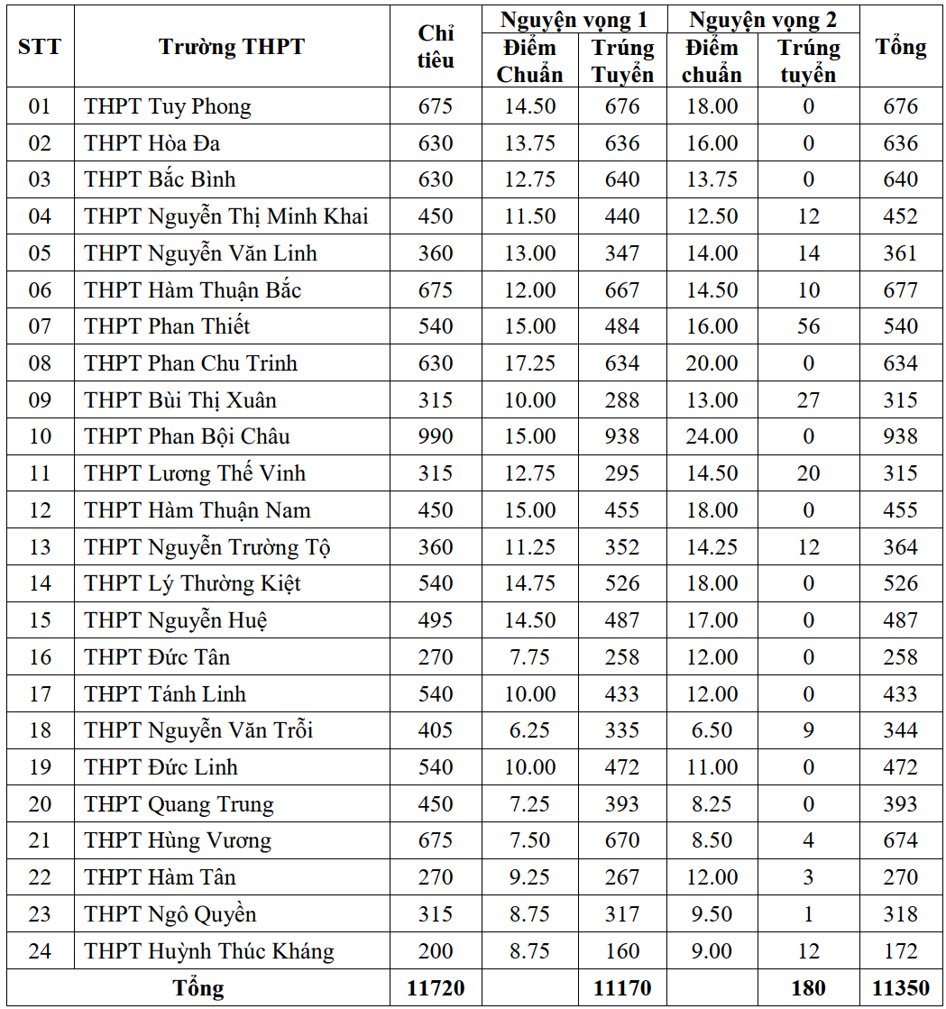 Căn cứ vào Kế hoạch tuyển sinh đã được Ủy ban nhân dân tỉnh phê duyệt , chỉ tiêu tuyển sinh , kết quả Kỳ thi tuyển sinh và kết quả Hội nghị xét duyệt tuyển sinh, Sở Giáo dục và Đào tạo thông báo điểm chuẩn và số lượng trúng tuyển cụ thể như sau: