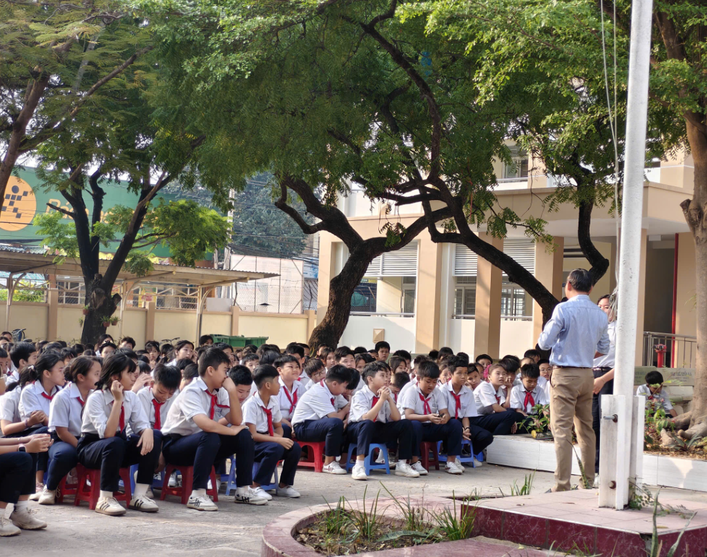 Sáng thứ Hai, ngày 01/12/2025, trong không khí trang nghiêm và phấn khởi của buổi lễ chào cờ đầu tuần, Ban giám hiệu và Liên đội nhà trường đã tổ chức buổi sinh hoạt dưới cờ với nhiều nội dung ý nghĩa. Bên cạnh việc sơ kết thi đua tuần qua và triển khai kế hoạch tuần mới, tâm điểm của buổi lễ là chuyên đề tuyên truyền về phòng chống bạo lực học đường do thầy Lê Hồng Thuyên chia sẻ.
