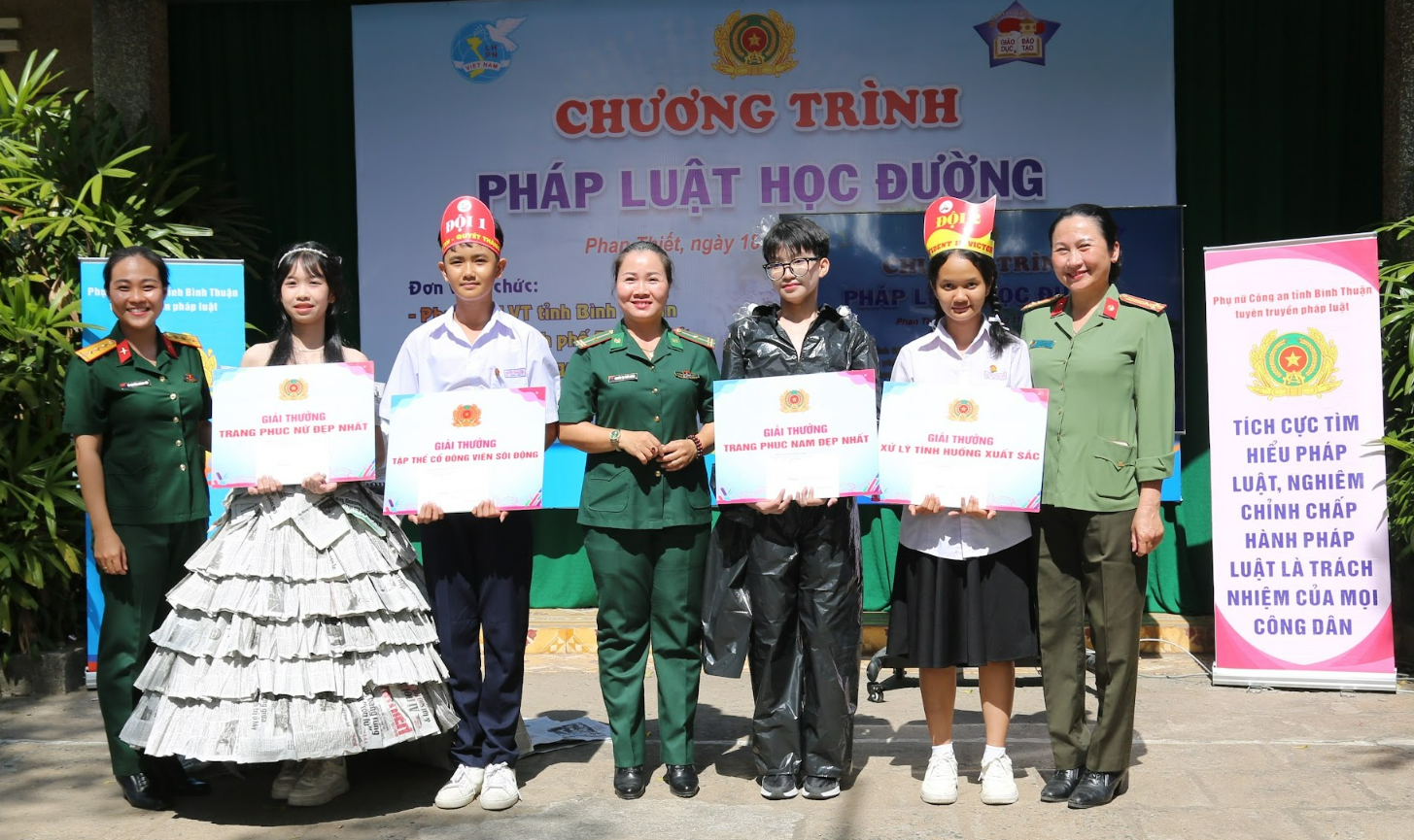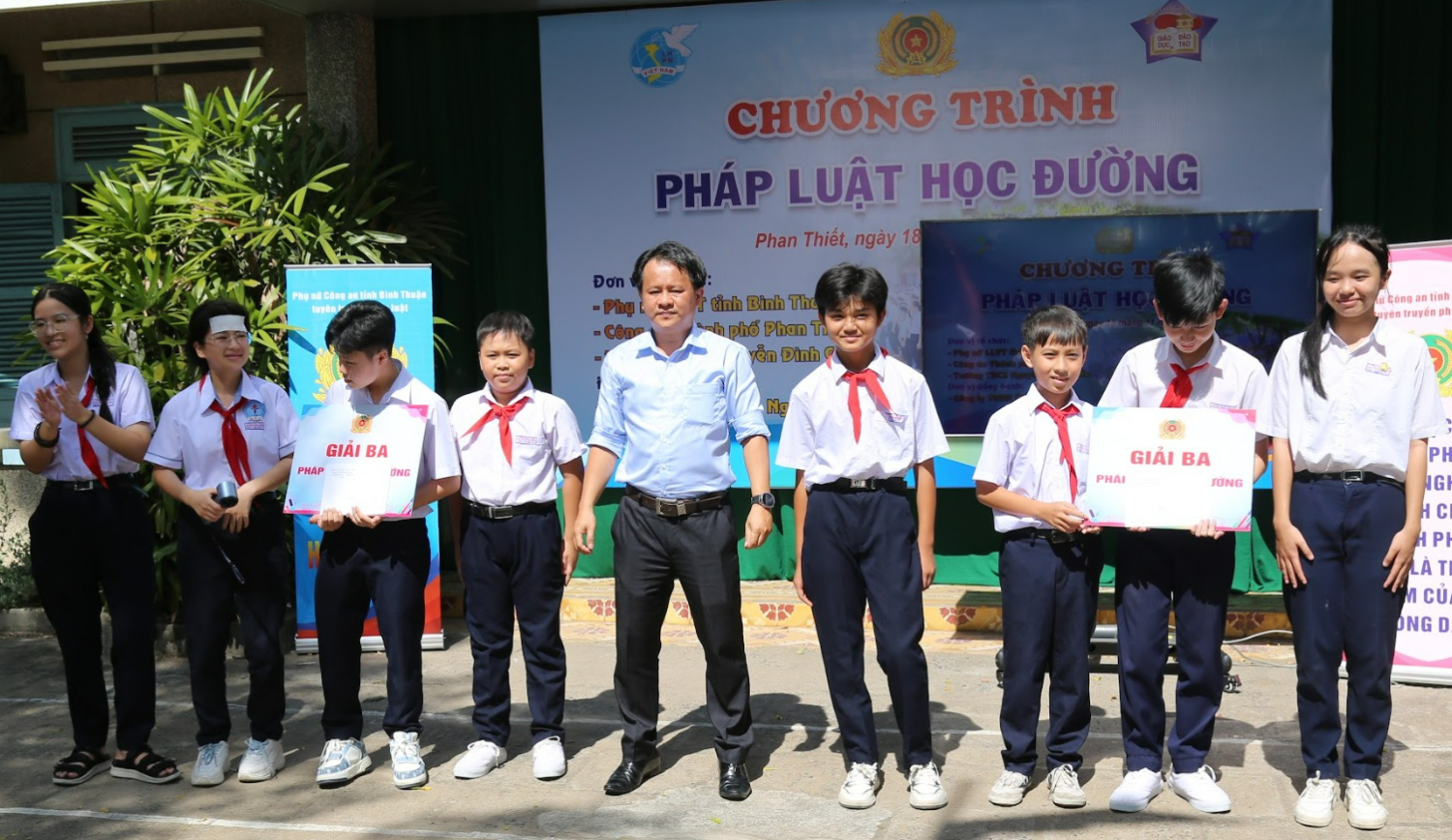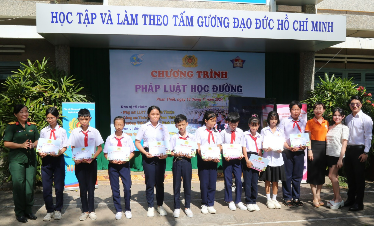 Trong bối cảnh hiện nay, khi xã hội ngày càng phát triển, việc trang bị kiến thức pháp luật cho học sinh trở nên cấp thiết. Nhằm nâng cao nhận thức về các vấn đề này,Phụ nữ LLVT tỉnh Bình Thuận; Công an thành phố Phan Thiết phối hợp cùng trường THCS Nguyễn Đình Chiểu đã tổ chức buổi Sinh hoạt ngoại khoá tìm hiểu pháp luật vào sáng thứ hai ngày 18 / 11/ 2024 có tên gọi: “PHÁP LUẬT HỌC ĐƯỜNG” với sự tham gia của toàn thể giáo viên, nhân viên, học sinh nhà trường. “Pháp luật học đường” không chỉ giúp các em nắm bắt được những quy định pháp luật cơ bản liên quan đến quyền công dân, luật giao thông, an ninh mạng, bạo lực học đường, ma tuý… mà còn rèn luyện ý thức bảo vệ môi trường, tôn trọng pháp luật, sống và hành động theo pháp luật.