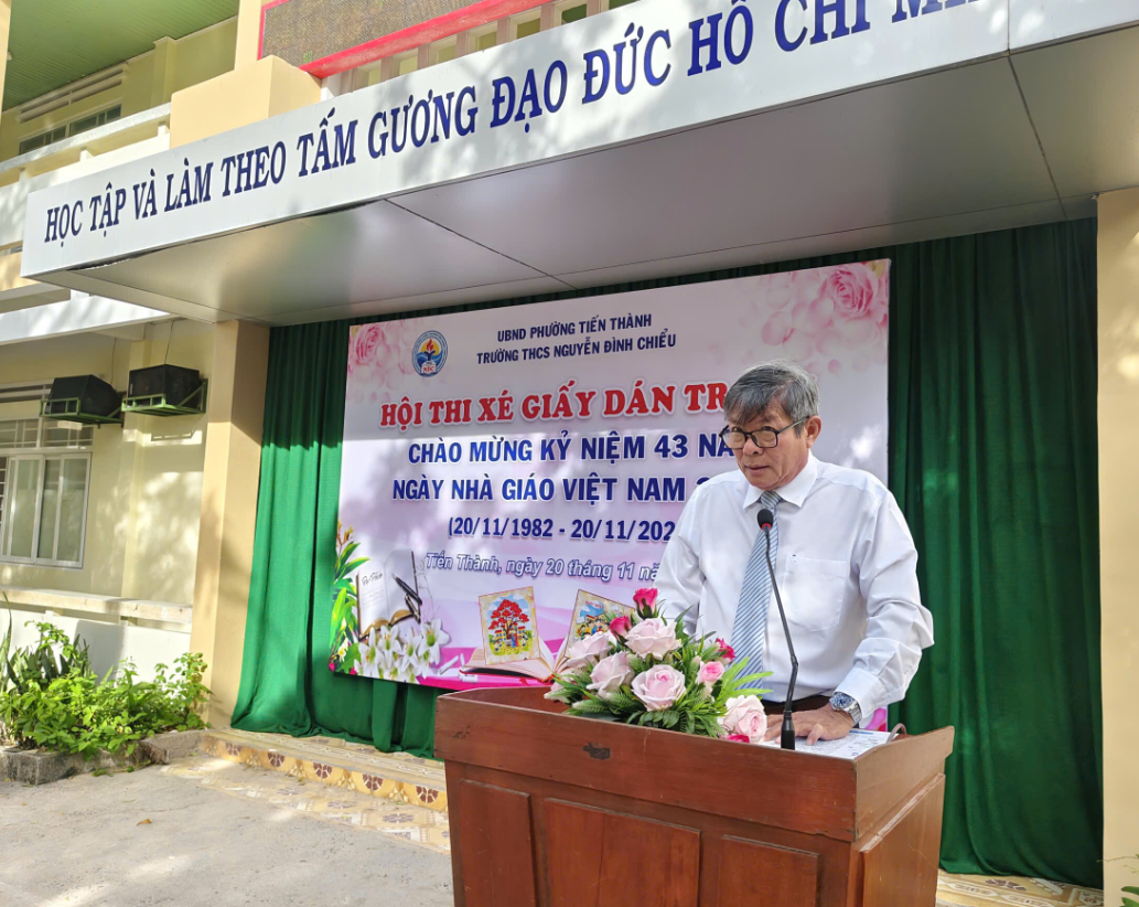 Tại buổi lễ, thầy Nguyễn Hoàng Khuyết – Bí thư Chi bộ, Hiệu trưởng nhà trường – đã đọc diễn văn ôn lại truyền thống "Tôn sư trọng đạo" vẻ vang của dân tộc, đồng thời gửi lời tri ân sâu sắc đến các thế hệ nhà giáo đi trước và biểu dương những nỗ lực của tập thể giáo viên nhà trường trong năm học 2025-2026.