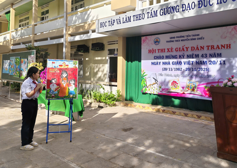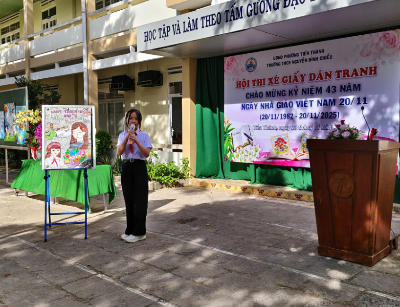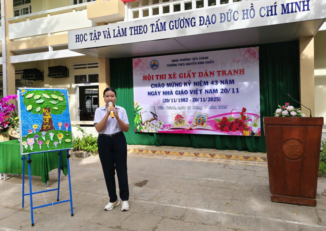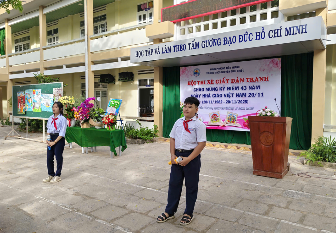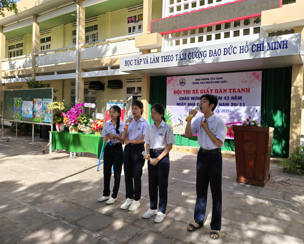 Hòa chung không khí hân hoan của cả nước hướng về ngày hội lớn của toàn ngành giáo dục, sáng ngày 20/11/2025, trường THCS Nguyễn Đình Chiểu đã tổ chức thành công Lễ Kỷ niệm 43 năm Ngày Nhà giáo Việt Nam (20/11/1982 – 20/11/2025) và Vòng chung kết Hội thi "Xé giấy dán tranh" với chủ đề "Tri ân Thầy, Cô".