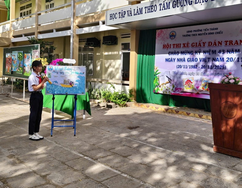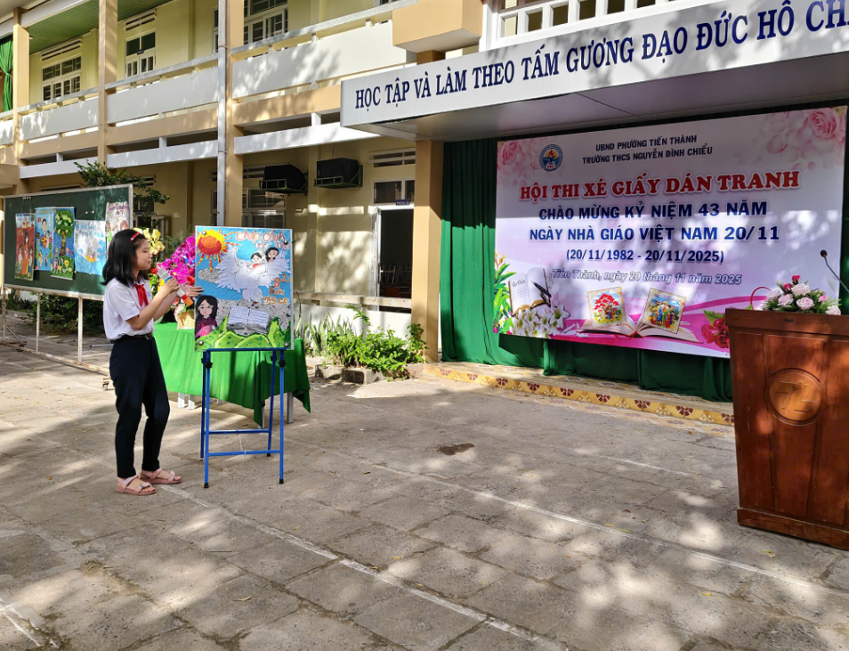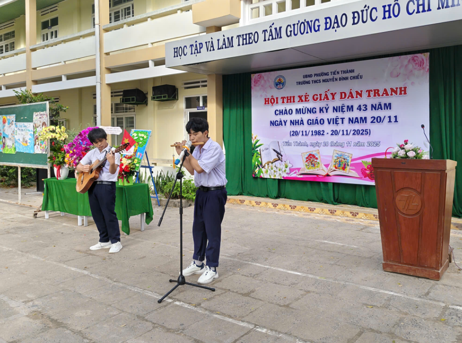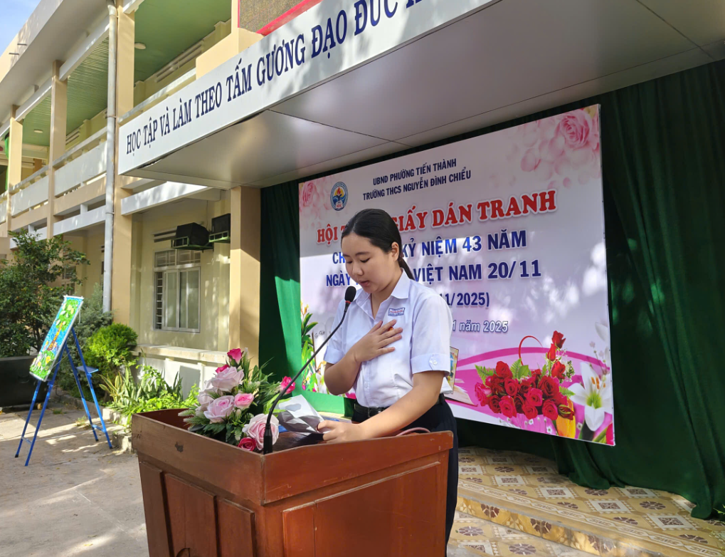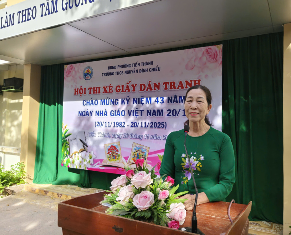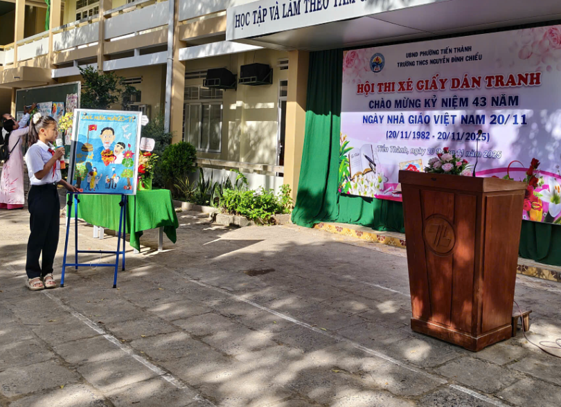 Hòa chung không khí hân hoan của cả nước hướng về ngày hội lớn của toàn ngành giáo dục, sáng ngày 20/11/2025, trường THCS Nguyễn Đình Chiểu đã tổ chức thành công Lễ Kỷ niệm 43 năm Ngày Nhà giáo Việt Nam (20/11/1982 – 20/11/2025) và Vòng chung kết Hội thi "Xé giấy dán tranh" với chủ đề "Tri ân Thầy, Cô".