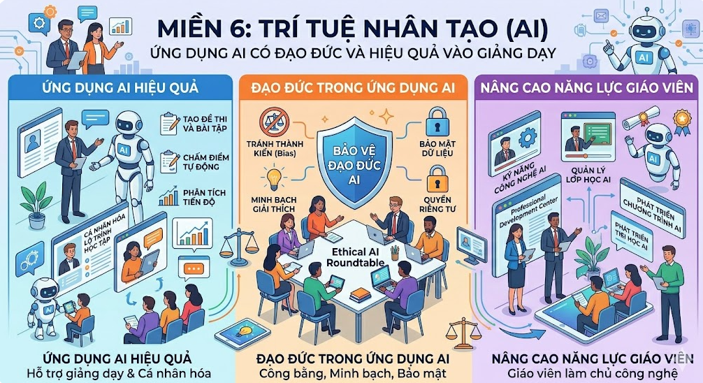 Miền 6: Trí tuệ nhân tạo (AI) (Ứng dụng AI có đạo đức và hiệu quả vào giảng dạy).