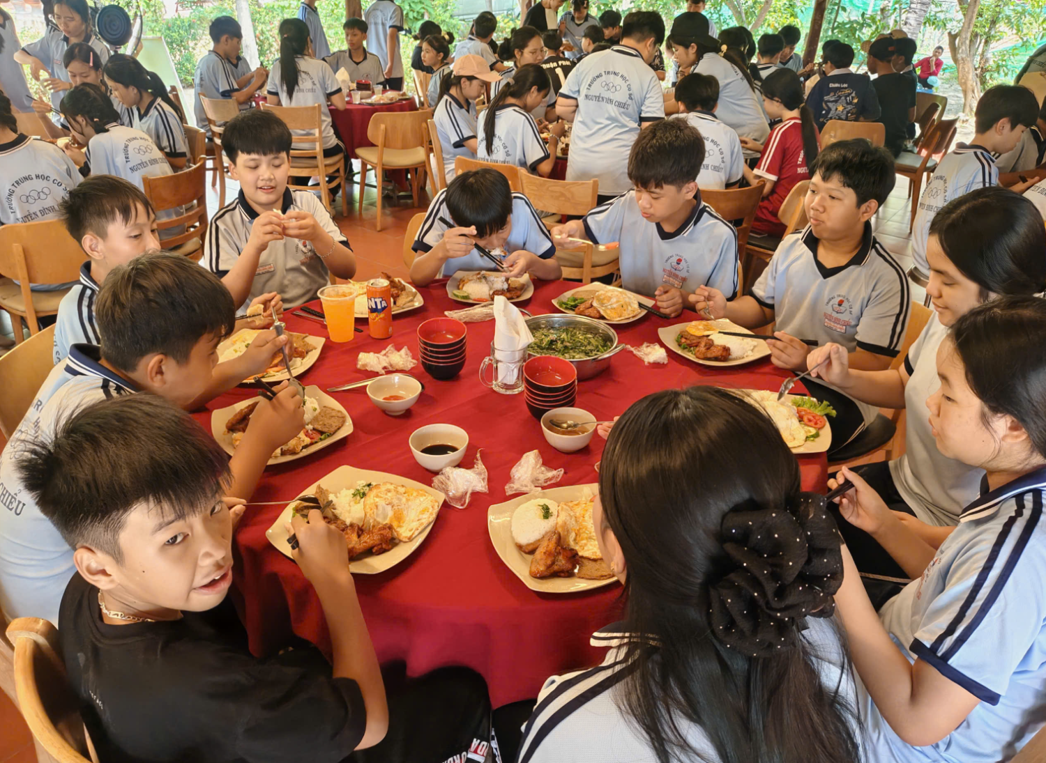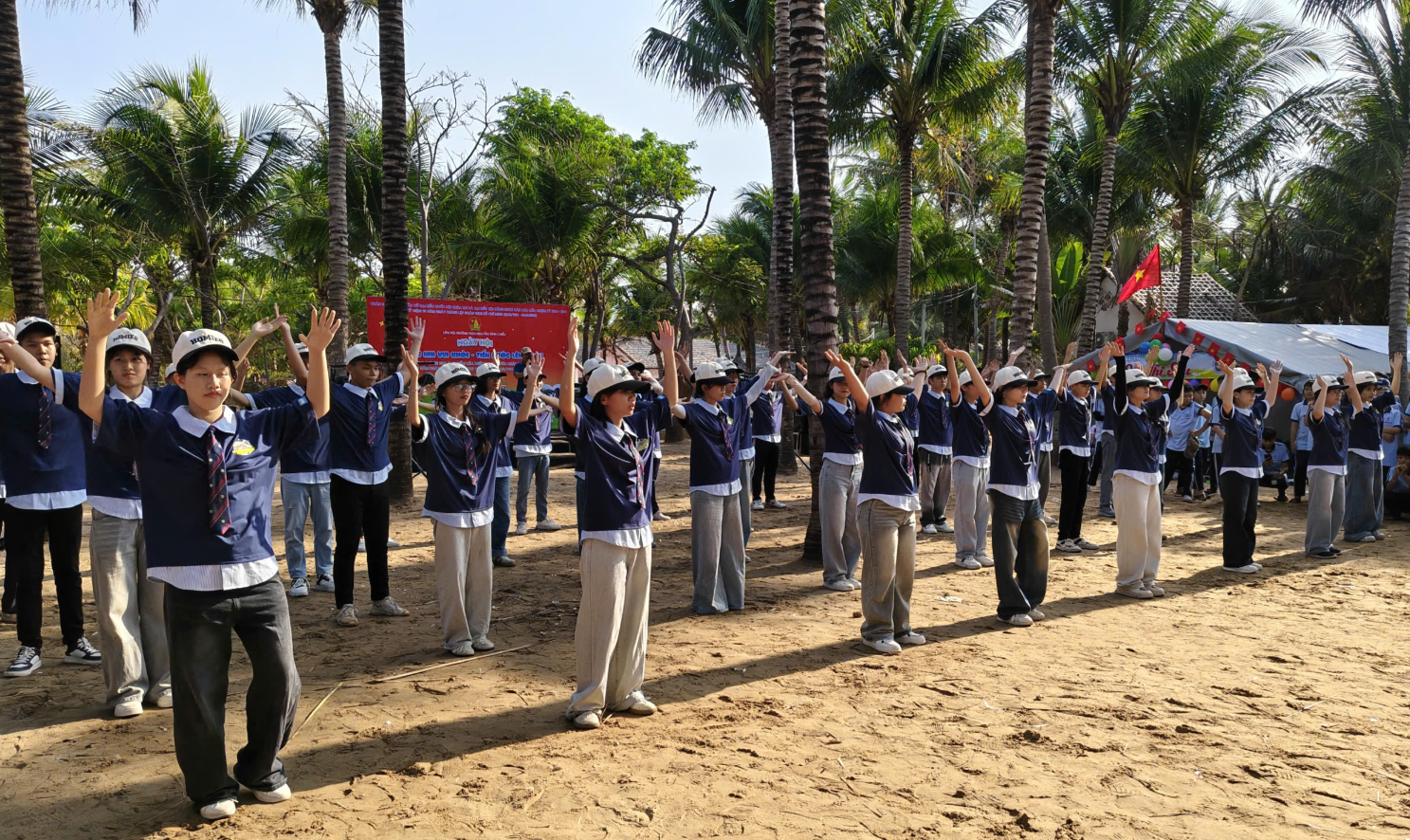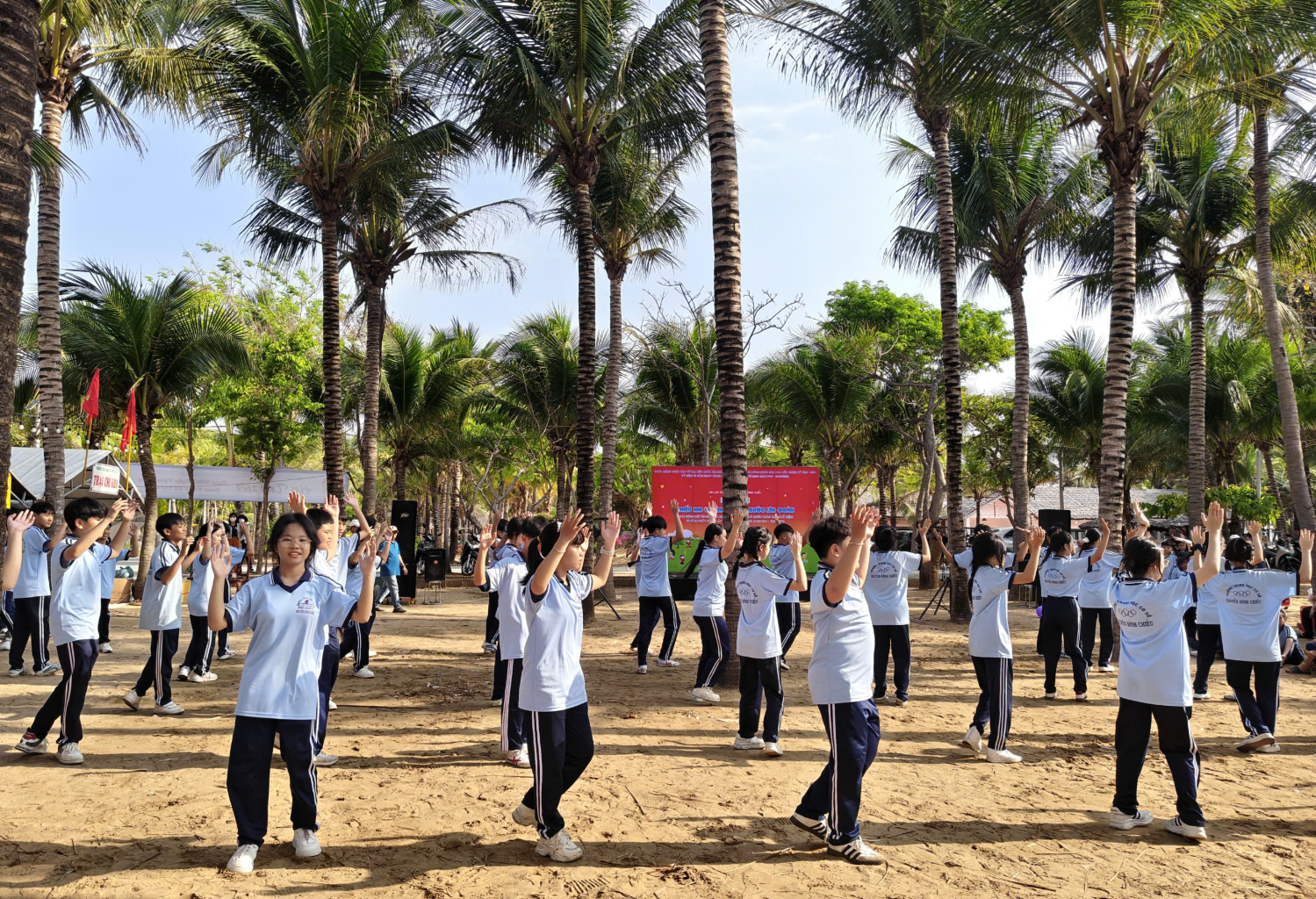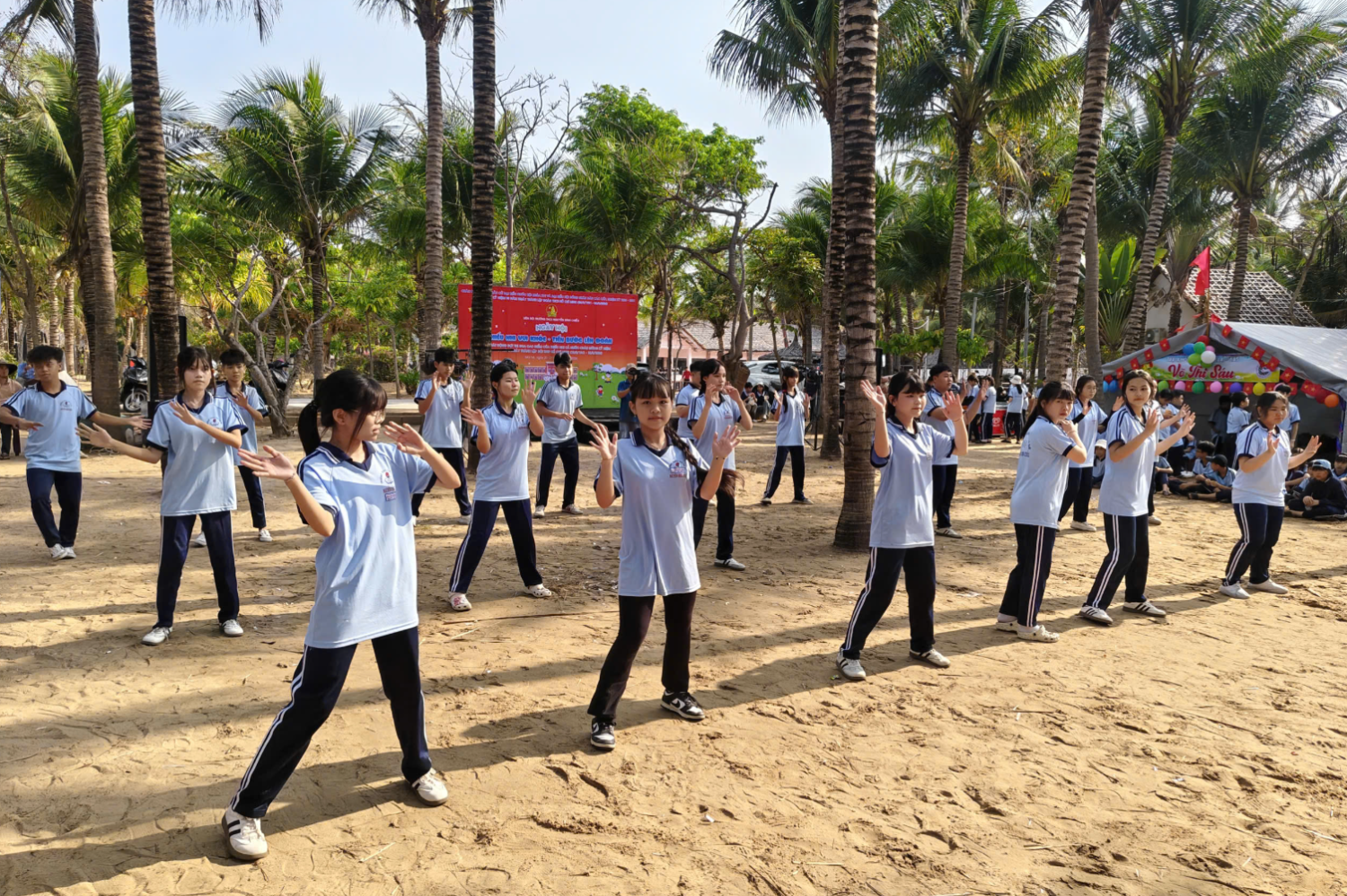 Một trong những điểm nhấn nổi bật của hội trại chính là sự tham gia đông đảo, nhiệt tình và đầy năng lượng của các em học sinh khối 6 và khối 7. Khi bước vào các phần thi và hoạt động vận động, học sinh toàn trường đã thực sự hòa mình, “cháy hết mình” với tinh thần sôi nổi, hào hứng. Những tiếng hò reo, cổ vũ vang dội đã làm bừng sáng cả không gian Mũi Né, tạo nên bầu không khí náo nhiệt, đầy cảm xúc. Từ những phút giây còn e dè ban đầu, các em đã nhanh chóng vượt qua chính mình, tích cực tham gia vào từng hoạt động, thể hiện rõ nét tinh thần đoàn kết, ý chí vươn lên và sức trẻ tràn đầy nhiệt huyết.