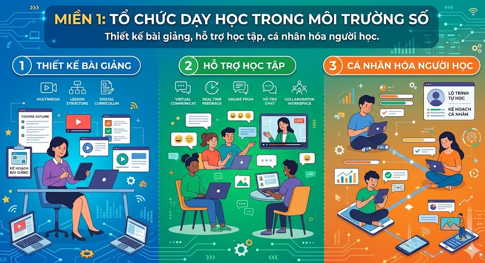 Miền 1: Tổ chức dạy học trong môi trường số (Thiết kế bài giảng, hỗ trợ học tập, cá nhân hóa người học).