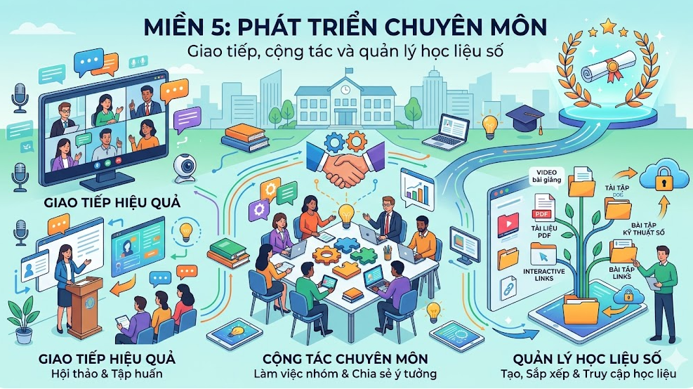 Miền 5: Phát triển chuyên môn (Giao tiếp, cộng tác và quản lý học liệu số).