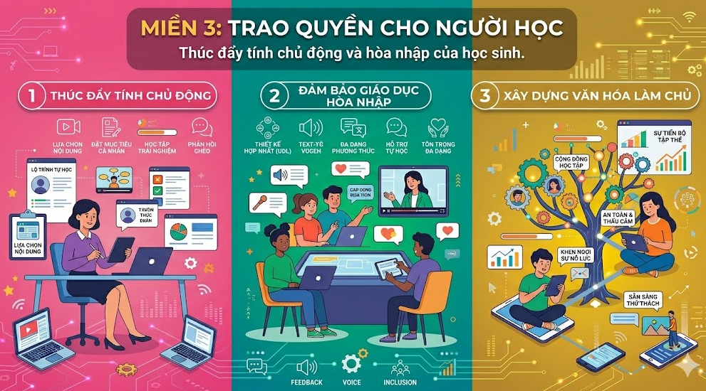 Miền 3: Trao quyền cho người học (Thúc đẩy tính chủ động và hòa nhập của học sinh).