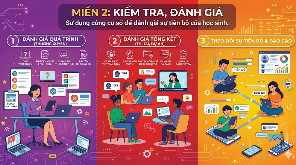 Miền 2: Kiểm tra, đánh giá (Sử dụng công cụ số để đánh giá sự tiến bộ của học sinh)