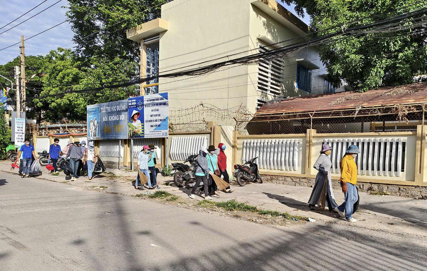 Các thầy cô giáo đã không quản ngại thời tiết, hăng hái tham gia dọn dẹp vệ sinh hai bên các tuyến đường, thu gom rác thải, phát quang bụi rậm và làm sạch các khu vực công cộng. Hoạt động này không chỉ thể hiện tinh thần trách nhiệm của mỗi cá nhân đối với xã hội mà còn là một hành động giáo dục trực quan, thiết thực, nhằm nêu gương và lan tỏa ý thức bảo vệ môi trường đến các em học sinh và người dân.