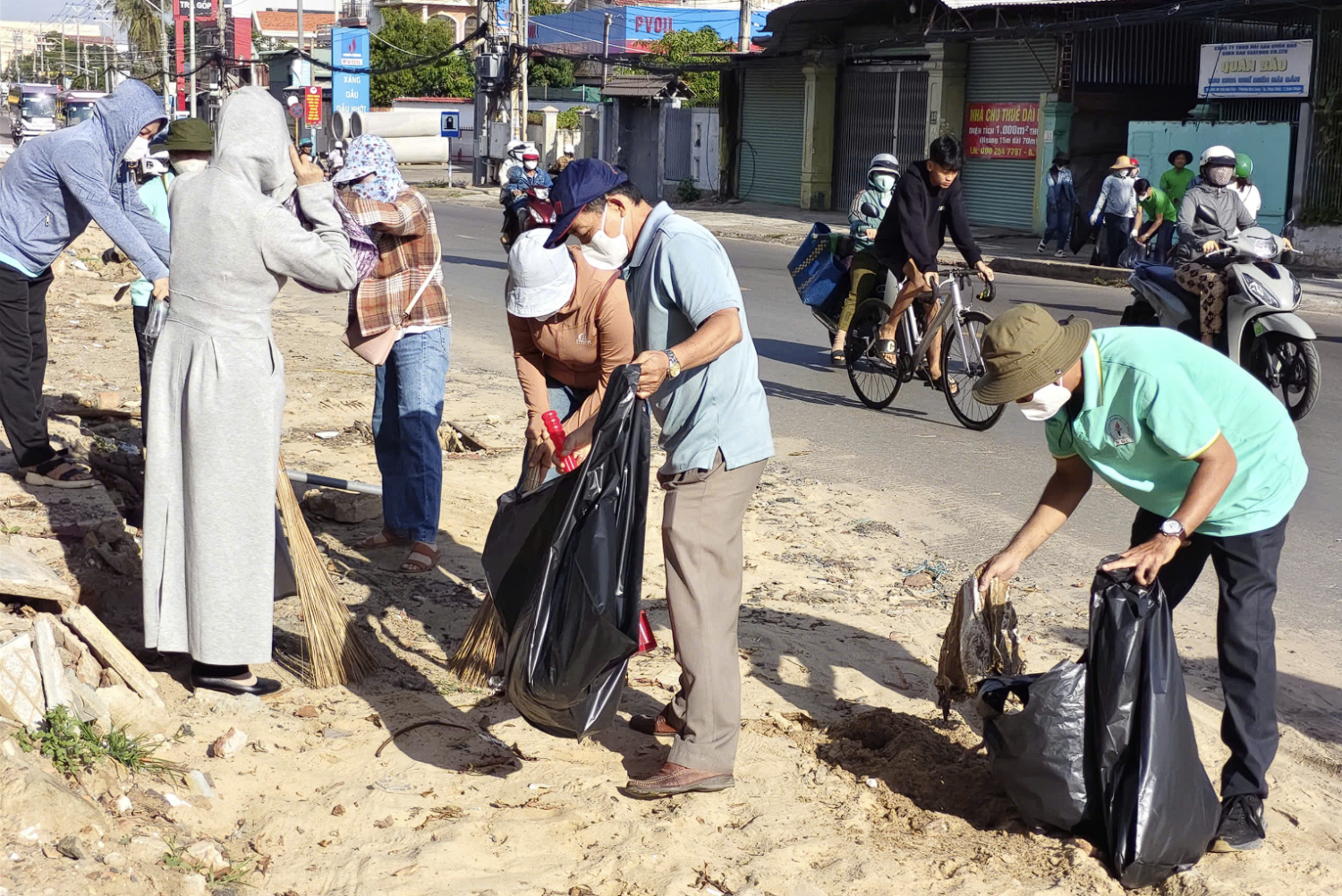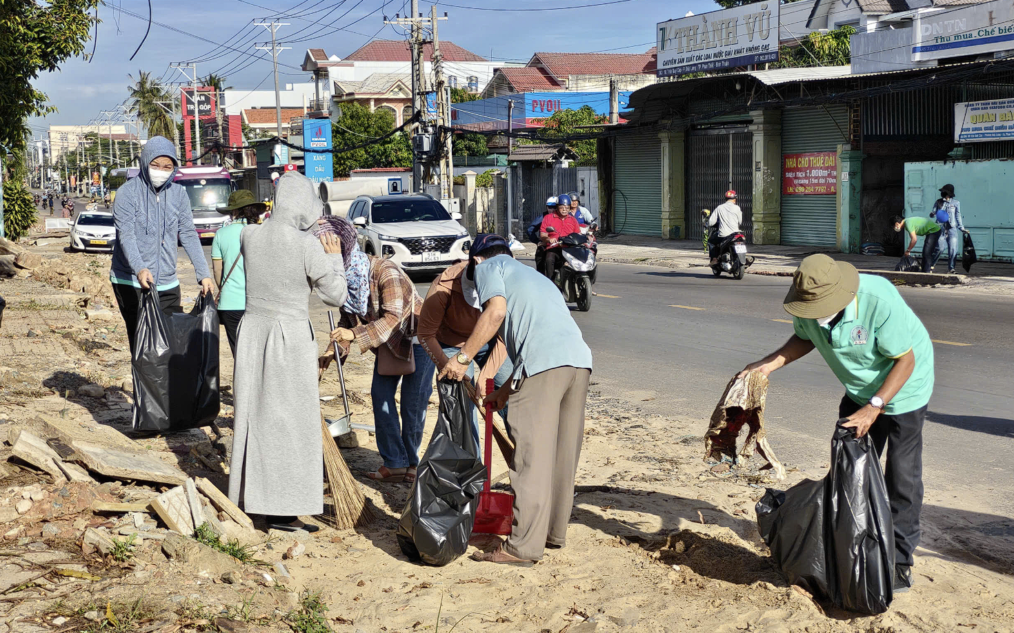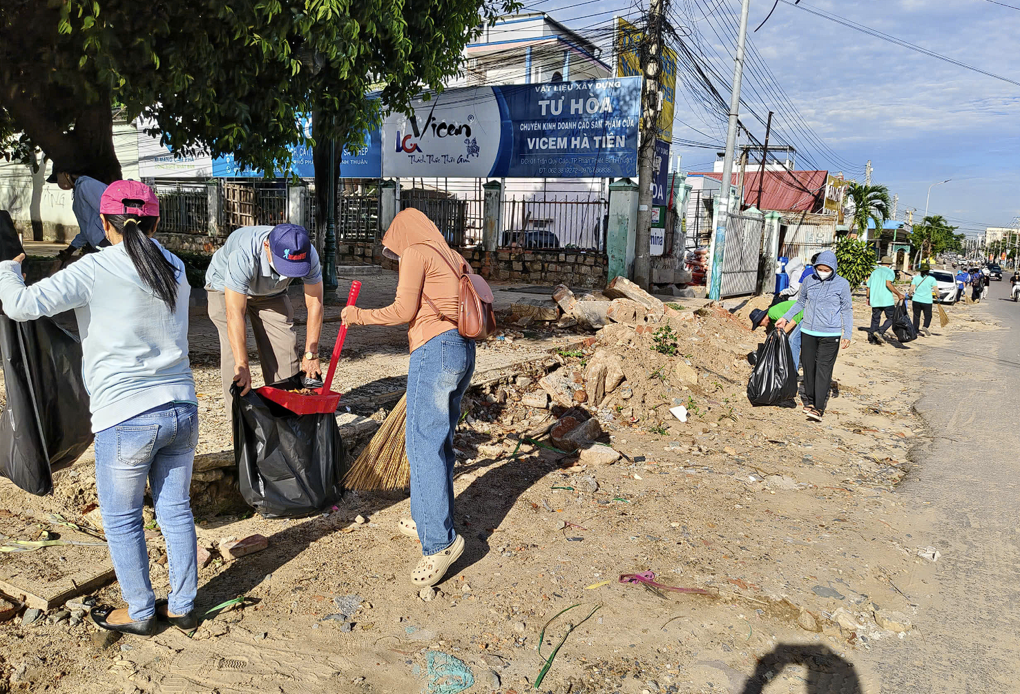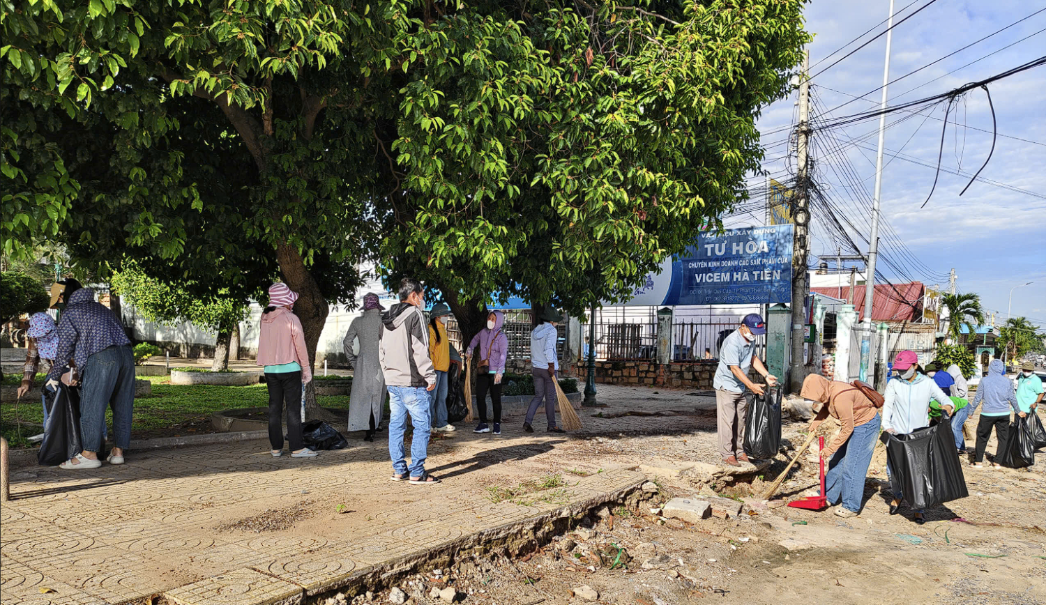 Thực hiện Thông báo số 540/TB-UBND của UBND phường Tiến Thành, với chủ đề “Nhà ở, trụ sở cơ quan, đơn vị, cơ sở kinh doanh dịch vụ, tuyến đường, bờ biển phường Tiến Thành... sáng, xanh, sạch, đẹp, an toàn”, đội ngũ nhà giáo đã có mặt đông đủ cùng các ban ngành, đoàn thể và người dân địa phương.